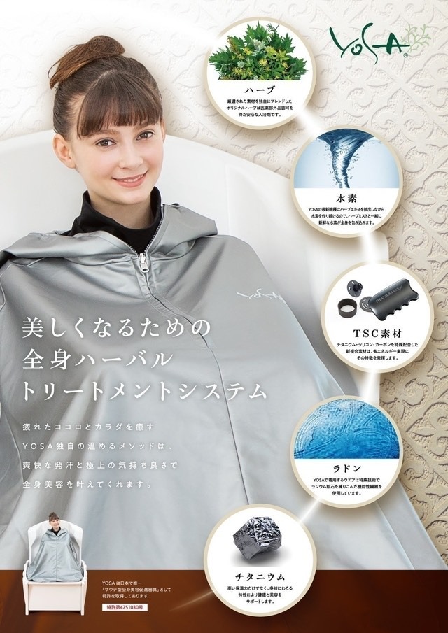 YOSAは、ハーブの蒸気を使って身体の芯から温め、新陳代謝を促進することで健康的に美しくなることを目的として開発された健康法です。
